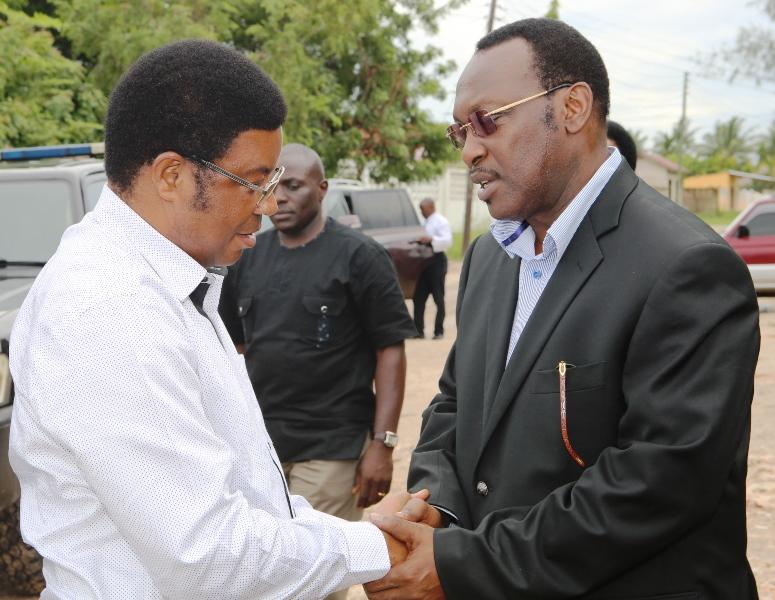 Waziri Mkuu,Kassim Majaliwa akisalimiana na Mwenyekiti wa CHADEMA na kiongozi wa Upinzani Bunge, Freeman Mbowe wakati alipokwenda kumpa pole kufuatia kifo cha kaka yake, Kanali Mstaafu Maximillian Mbowe, nyumbani kwa marehemu,Tegeta jana